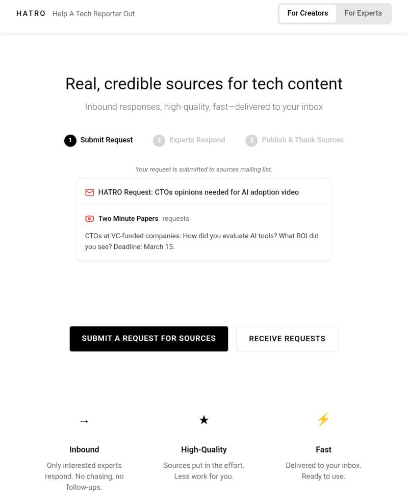 And if you're an expert – if you're a senior developer or a CTO or a data engineer who has opinions about the way your field gets covered – you can subscribe to the list and receive requests. Respond to the ones that match your experience. Get credited in content you actually respect.